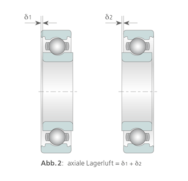 Die axiale Lagerluft ist das Maß, um das sich ein Lagerring gegenüber dem anderen Ring, z.B. Innenring gegenüber Außenring in axialer Richtung von einer Grenzstellung in die andere verschieben lässt (siehe Abb. 2).
